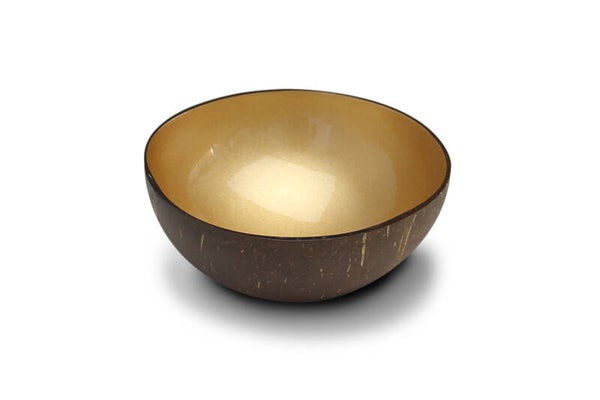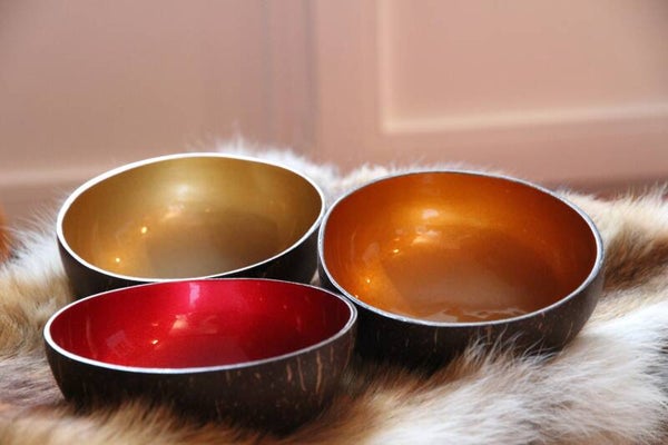 Gerecycleerde kokosnootschalen voorzien van een leuk kleuraccent aan de binnekant.